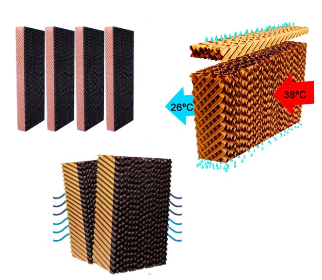 Utilizada principalmente para resfriar e umidificar o ar, reduz a temperatura em até 12ºC ao passar água por seus canais, provocando evaporação.